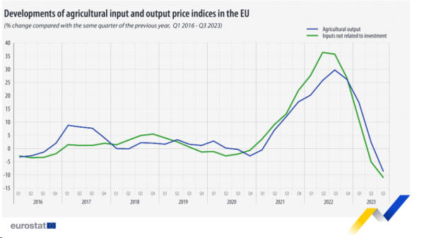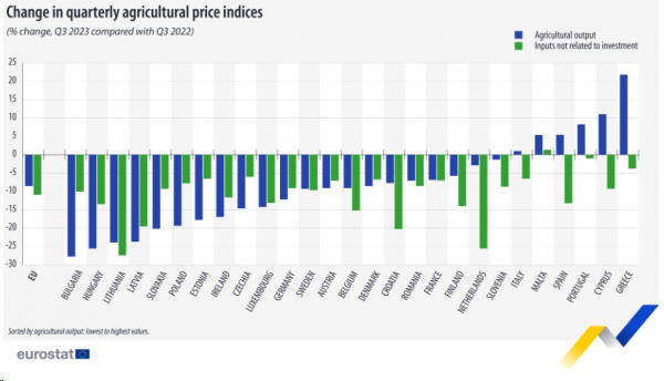 τιμές στο χωράφι μειώθηκαν το γ’ τρίμηνο του 2023 στην