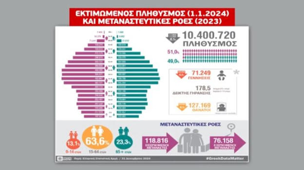 πληθυσμός (1/1/24) και μεταναστευτικές ροές (2023)
