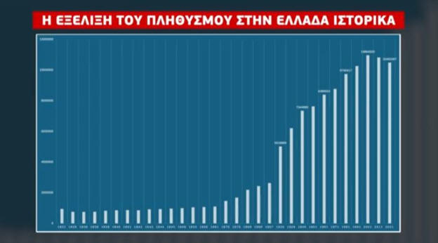 ακολουθεί καταγράφεται η εξέλιξη του πληθυσμού στην Ελλάδα