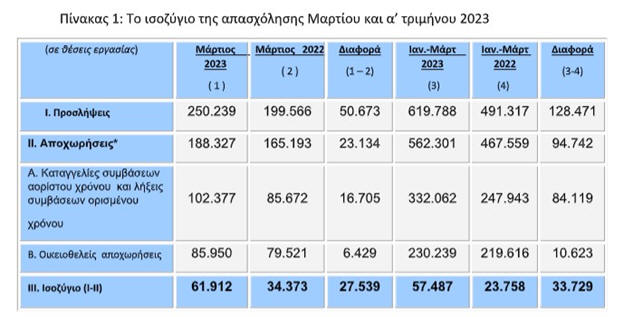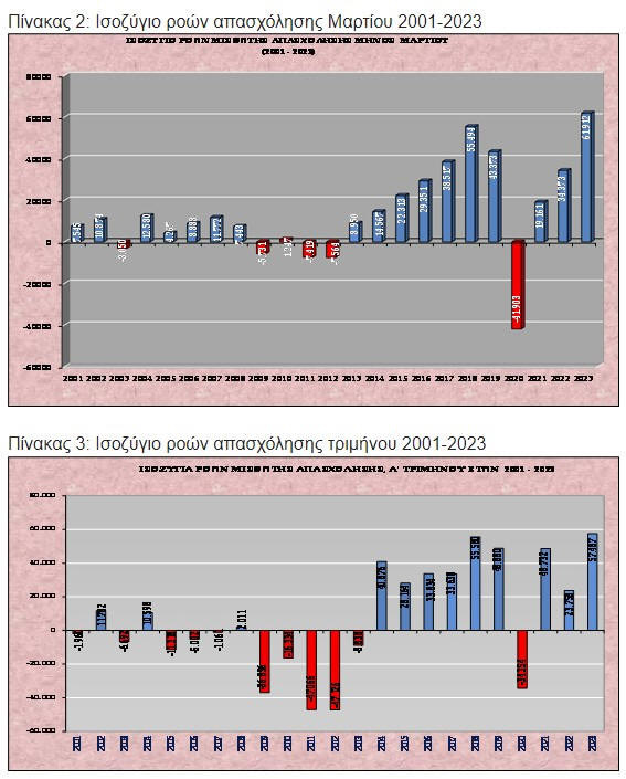 απασχόλησης τόσο τον Μάρτιο του 2023 όσο και κατά το τρίμηνο