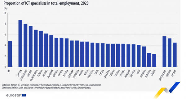 μέσο ποσοστό εργαζομένων με ειδικότητα ICT ήταν σχεδόν