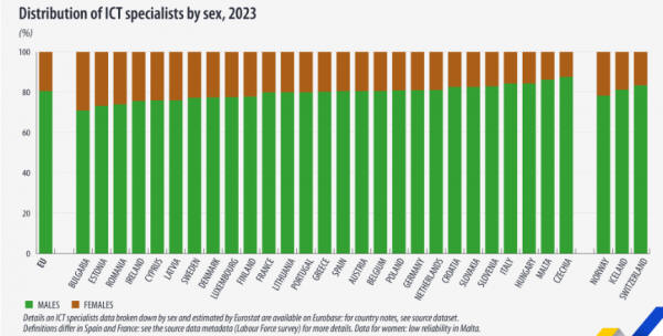 εργαζόμενων σε θέσεις ICT στην ΕΕ ήταν γυναίκες (19,4%), αν