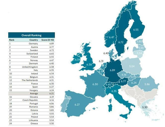τελευταίες θέσεις; H Λιθουανία και η χώρα μας, η Ελλάδα.