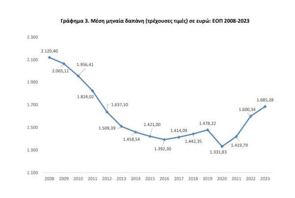 οικογενειακή δαπάνη σε τρέχουσες τιμές το 2023 ήταν 1.685,28