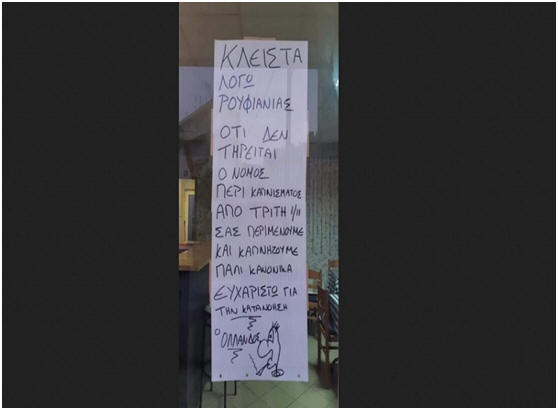 περιμένουμε να καπνίζουμε πάλι κανονικά» γράφει το σημείωμα.