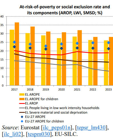κοινωνικό αποκλεισμό (AROPE) παρέμεινε σχετικά σταθερό στο