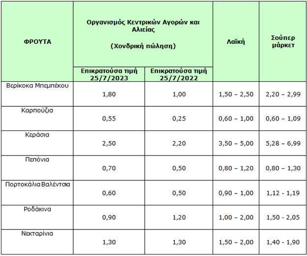 είναι εφέτος και η τιμή χονδρικής συγκριτικά με το 2022,