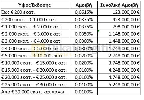 επί της ονομαστικής αξίας των εκδιδόμενων τίτλων, η οποία θα