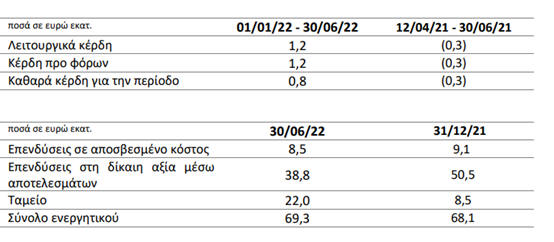 κέρδη 800.000 ευρώ στο εξάμηνο,