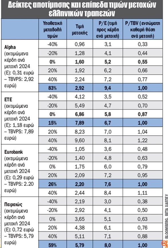 P/TBV, που οι ελληνικές τράπεζες