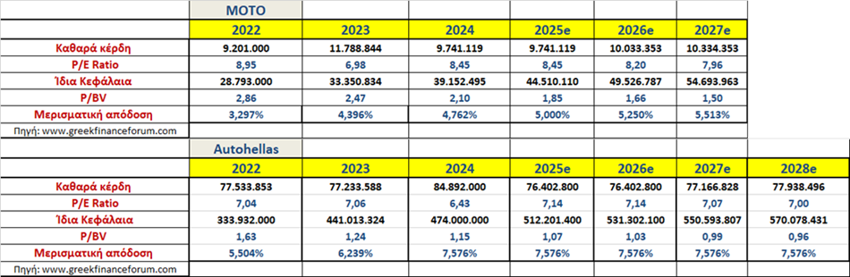 τους δείκτες των δύο εισηγμένων, με