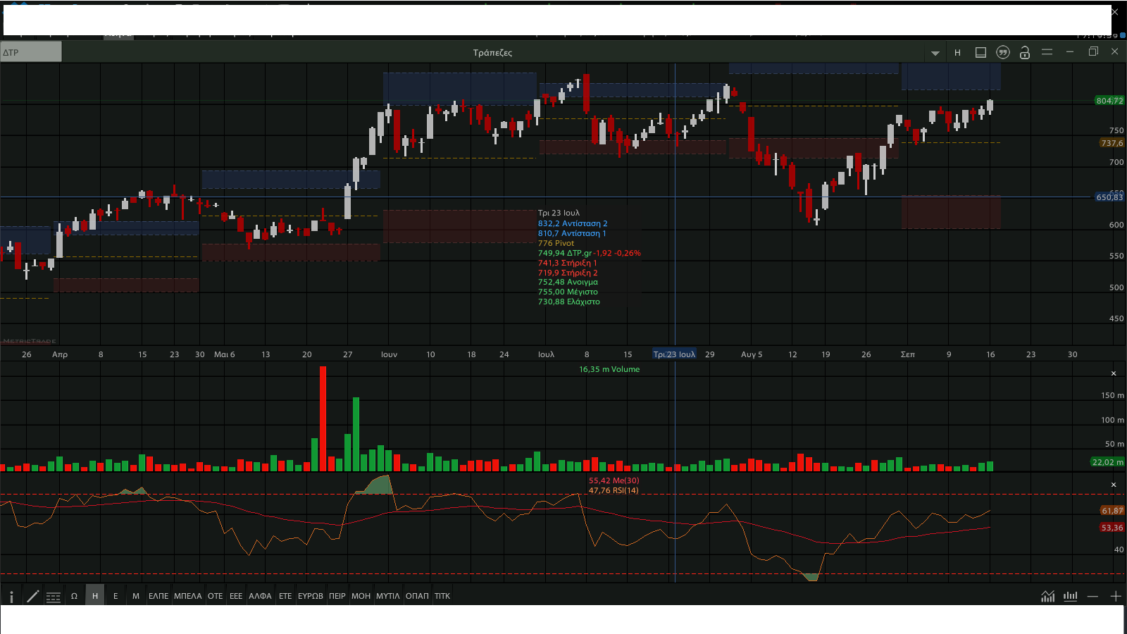 έκλεισε ο τραπεζικός δείκτης τη Δευτέρα, στις 804,72