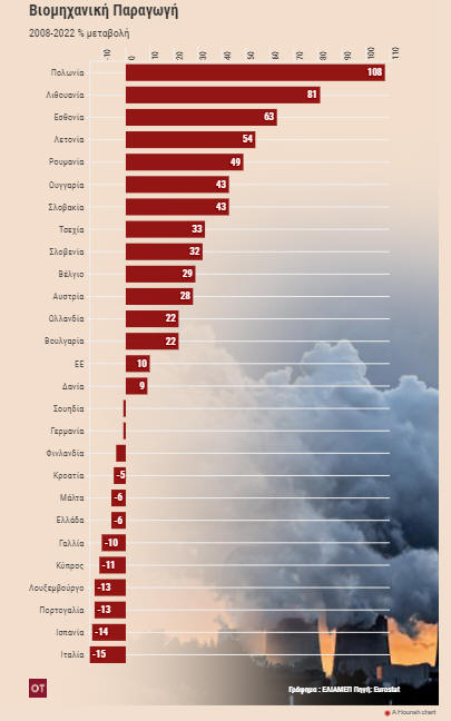 Λετονία (+54%). H βιομηχανική παραγωγή αυξήθηκε