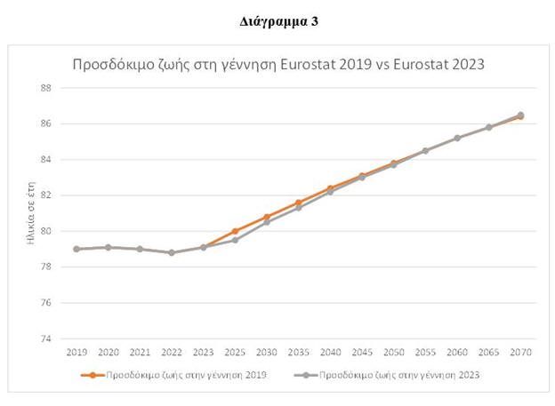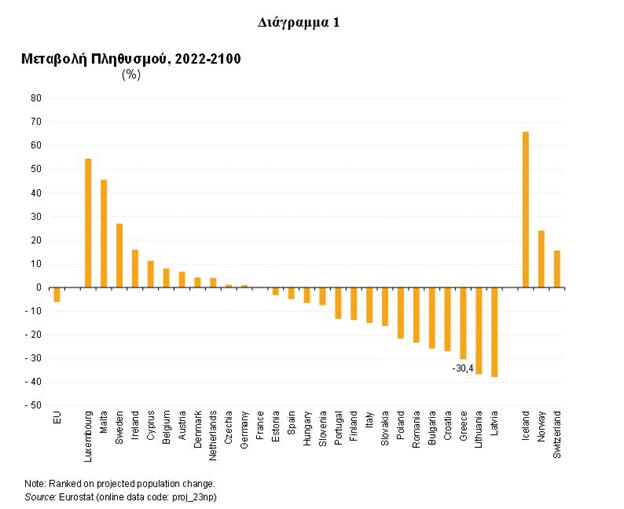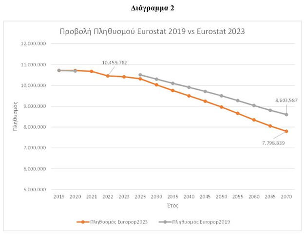 η Eurostat στις προβολές του 2023, προβλέπει ότι