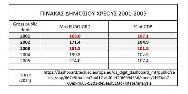 δείχνουν ότι το χρέος στο τέλος 2003 ήταν 101,5%
