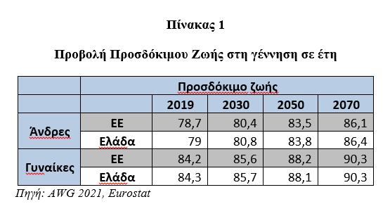 86,3 έτη το 2019 σε 91,4 έτη το 2070) και η
