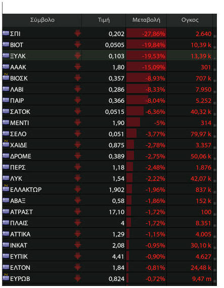 και του Ελλάκτωρα έκλεισαν με αρνητικό πρόσημο. |