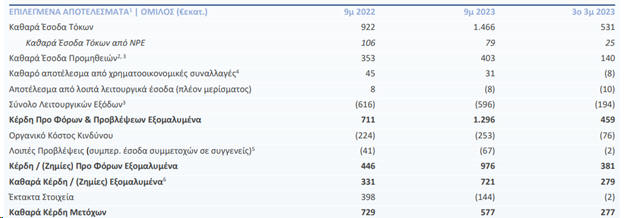 9μηνο 2023, τα καθαρά