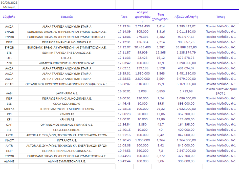 Τράπεζες – Σεπτέμβριος 2025