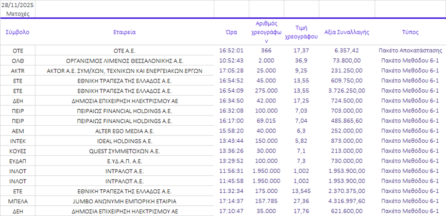 εισηγμένων ομίλων, όπως οι ΑΔΜΗΕ,