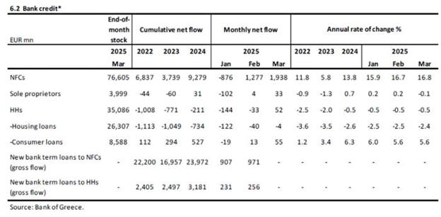Ειδικότερα, τον Μάρτιο του 2025, οι καθαρές ροές δανείων