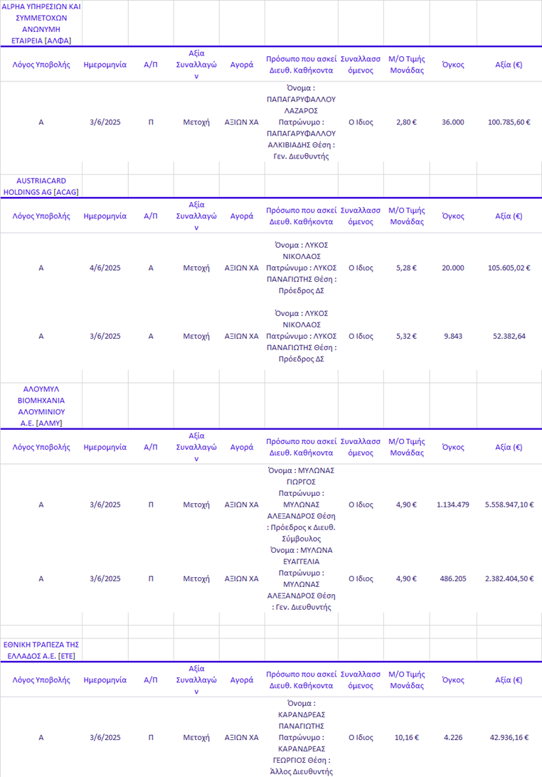 Γνωστοποιήσεις συναλλαγών |