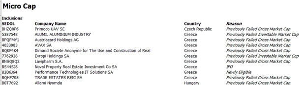 Large Cap του FTSE Russell, με την αλλαγή να τίθεται σε ισχύ