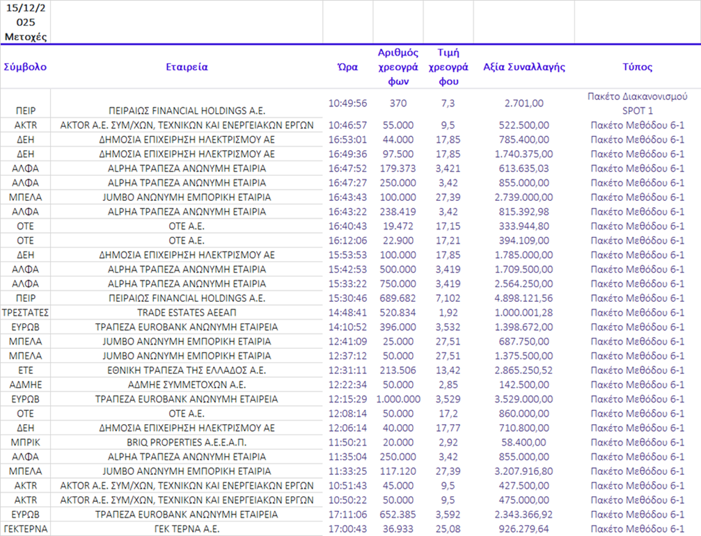 συναλλαγές ύψους 199 εκατ. ευρώ, ενώ συνεχίζεται η παλινδρόμηση