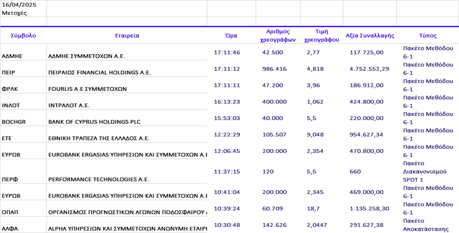Συναλλαγές σε Πακέτα |