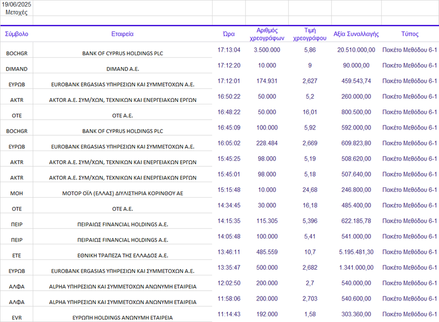 Term) με τη μετοχή της Τράπεζα Κύπρου να εισέρχεται στο δείκτη.