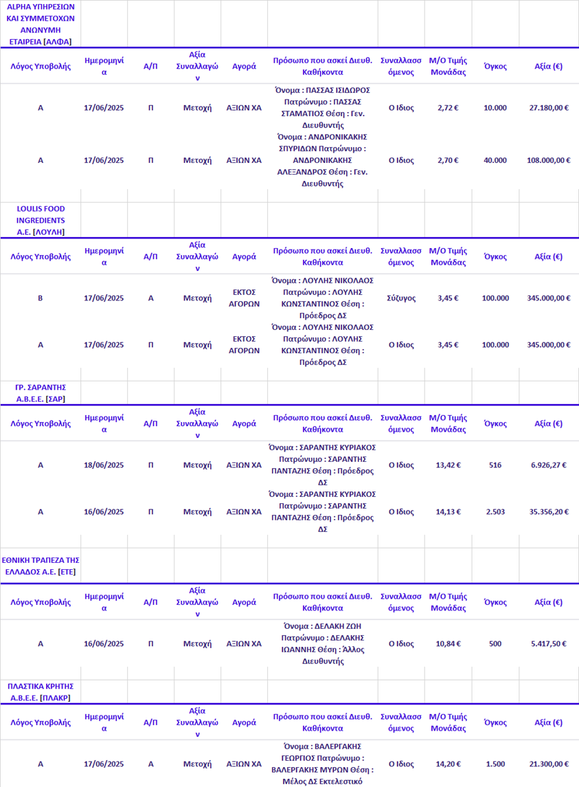 Γνωστοποιήσεις συναλλαγών |