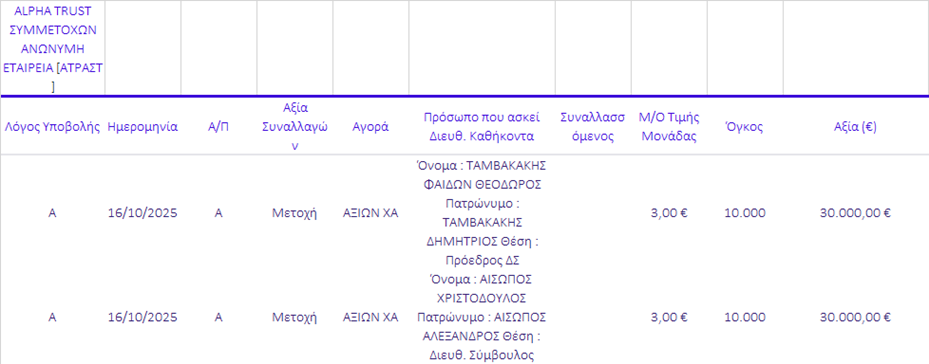 Γνωστοποιήσεις συναλλαγών |