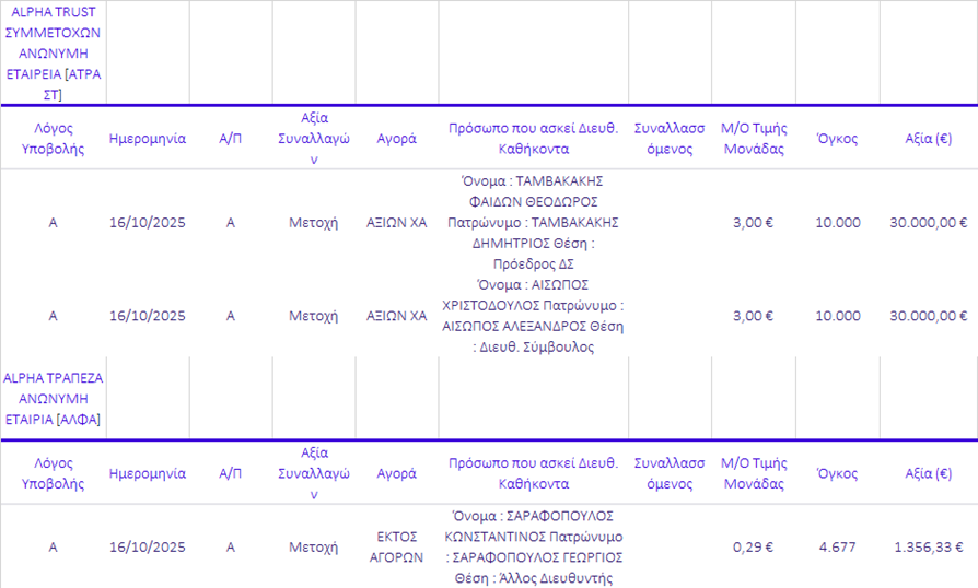 Γνωστοποιήσεις συναλλαγών |