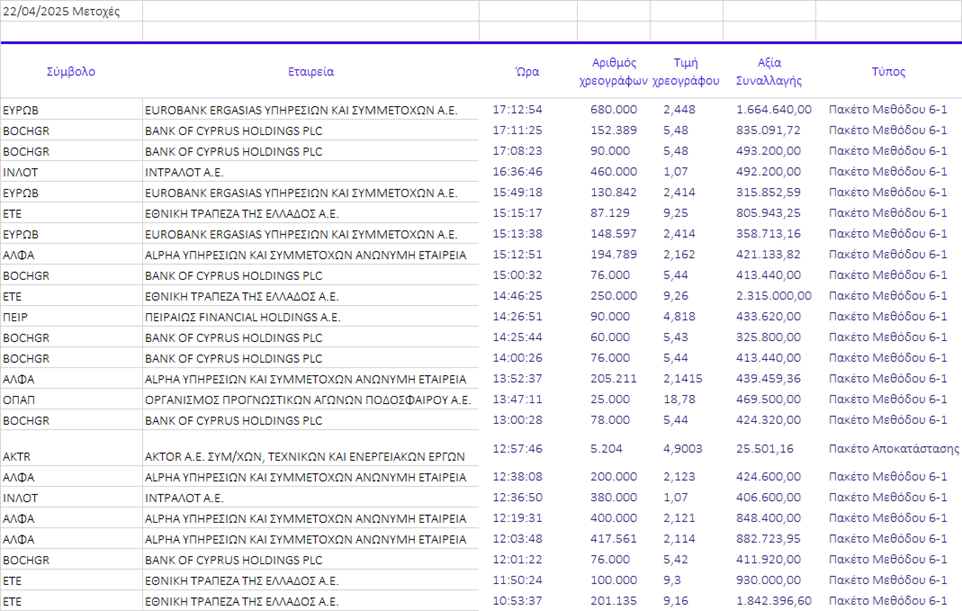Γνωστοποιήσεις συναλλαγών |