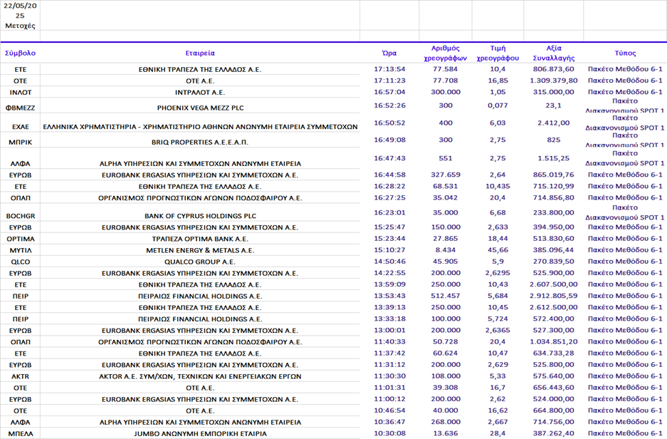 δραστηριότητα και λαμβάνοντας τα όλα. Η εισηγμένη στις τρέχουσες