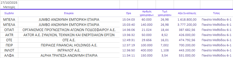 και μικρά πακέτα συναλλαγών ύψους 200-300 εκατ. ευρώ.