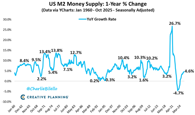 The US Money Supply grew 4.6% over the last year, the biggest YoY increase since July 2022