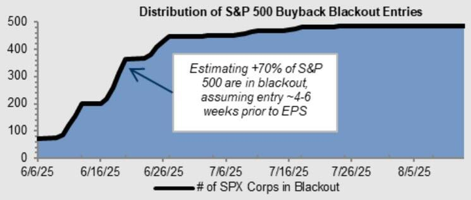 The buyback blackout is intensifying as about 350 S&P 500 companies are now on pause, per Goldman