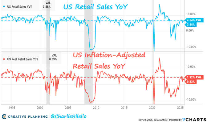 US Retail Sales have increased 3.9% over the past year at the same time US Consumer Sentiment has plummeted to near record lows.