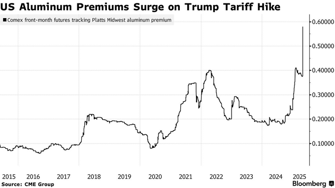 US aluminum premiums surge on Trump tariff hike