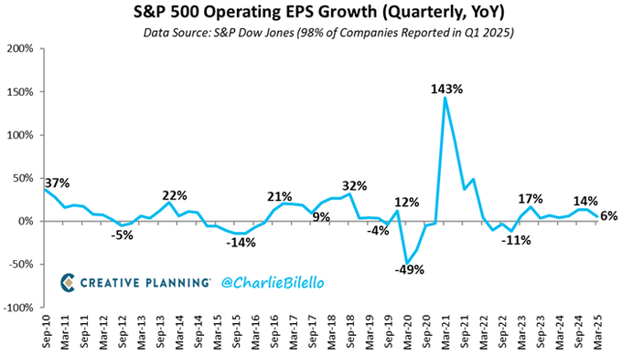 With 98% of companies reported, S&P 500 1st quarter operating earnings are up 6% over the prior year, the 9th consecutive quarter of positive YoY growth