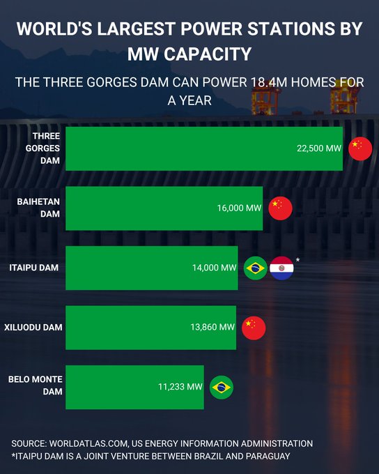 The world's largest power stations by megawatt (MW) capacity