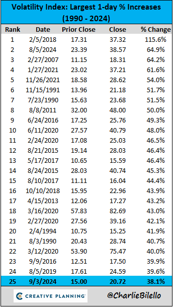 The VIX spiked 38% higher today, the 25th largest 1-day % increase in history