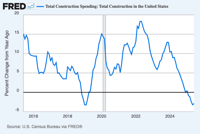 US Construction spending has slowed down considerably, year-on-year.