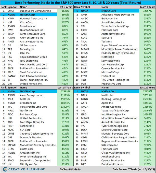 are the top 30 stocks in the S&P 500 over the past 30 years.