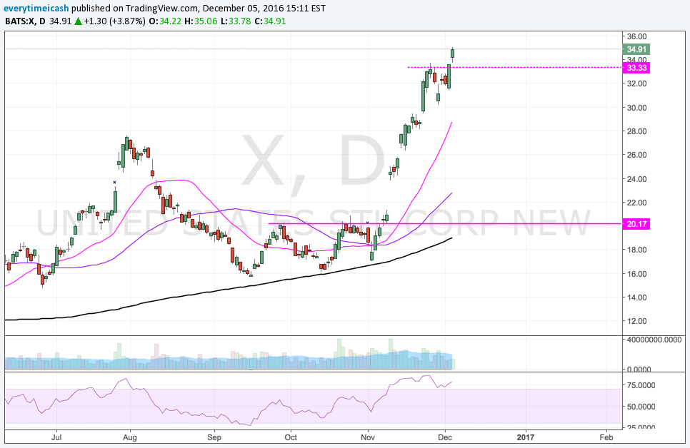 US Steel is up 77% over the last month. Steel Dynamics is up 37%