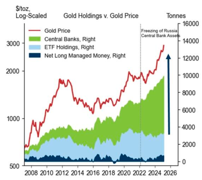 Central banks have been an enormous source of demand for gold over the last several years, per Goldman