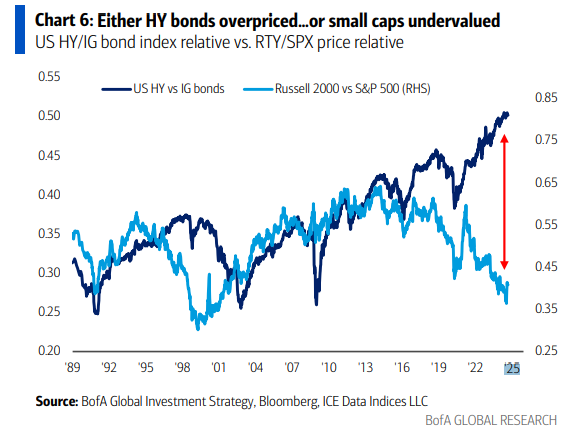 BofA: Either HY bonds overpriced…or small caps undervalued