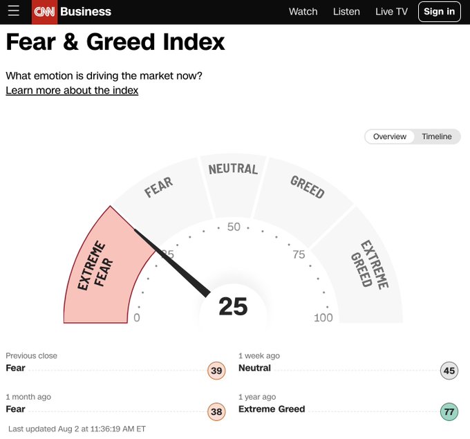 The stock market Fear and Greed is now down into Extreme Fear for the first time since October 2023