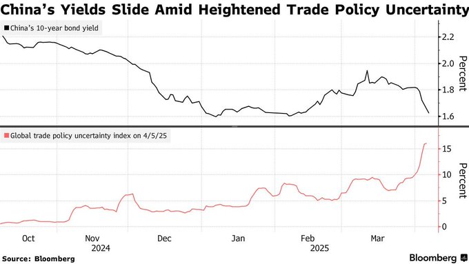 Yields in China are once again sliding amid increased economic uncertainty due to tariffs